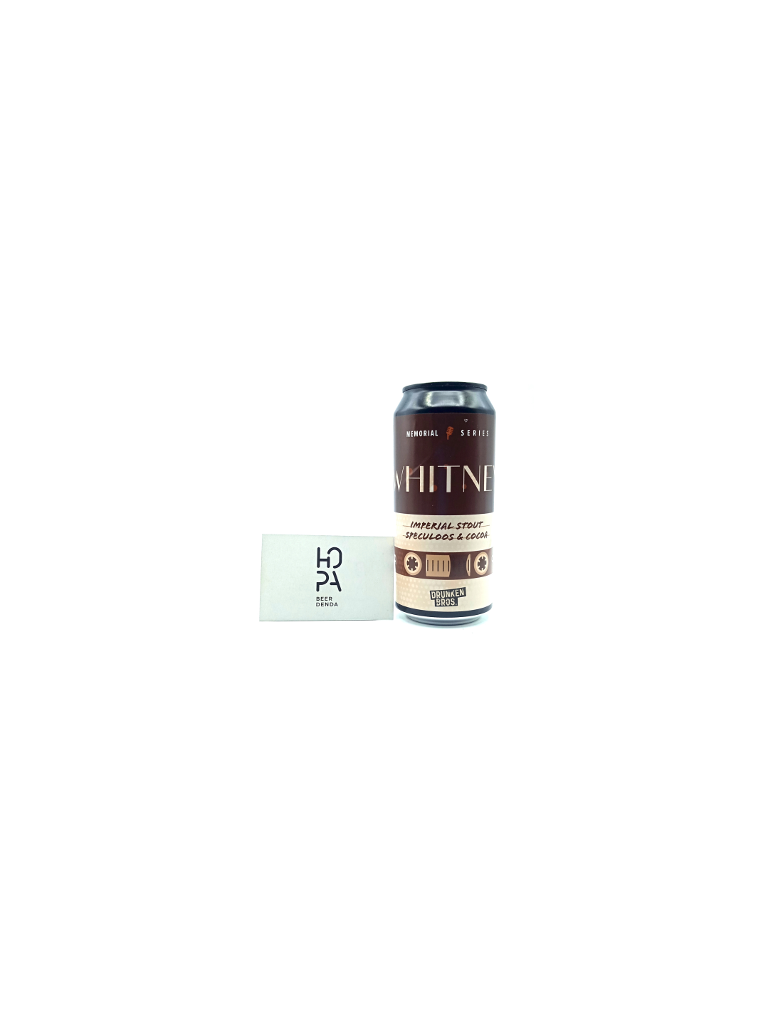 WHITNEY, Imperial Stout de 10,7% ABV. Negra de color caoba, sedosa, densa, a la que han añadido coco de comercio justo y galletas caramelizadas (Speculoos) Petrolaco de los buenos, para degustar en los fríos inviernos y en los veranos más calurosos, en primavera, en otoño, después de una comida, una tarde de domingo con pipas y película. Como quieras la vas a disfrutar al 100%