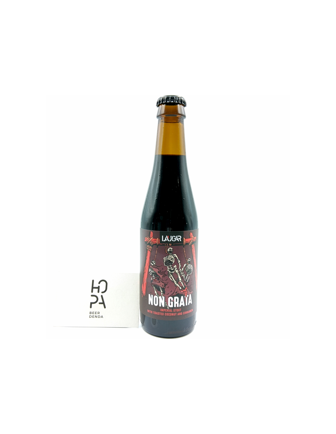 NON GRATA, Imperial Stout de 11% ABV con coco tostado y canela. Otro pepinazo de Laugar, Golosa, con un punto especiada y dulce. Un postre en toda regla. Tiene su punto exótico en aromas.