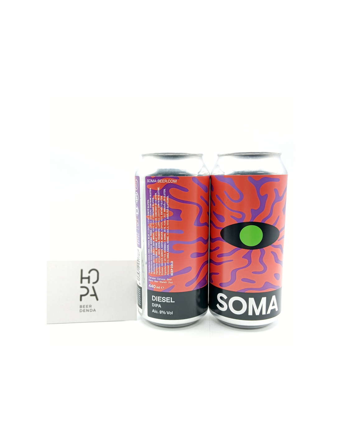 DIESEL, Hazy Dipa de 8% ABV con lúpulos Nelson Sauvin y Nectaron. De un amarillo pálido y muy turbia con una buena capa de espuma fina. Notas cítricas en aromas a piña, pomelo y naranja. En boca resulta sedosa con sabores a naranja y un punto de pino. Clásica Soma que no defrauda.